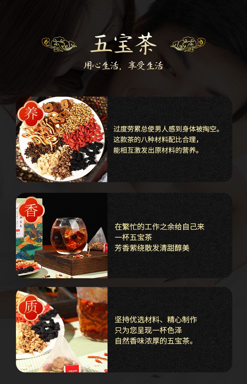 到手19.9.。。熬夜男性肾精补品保健肾茶,传承中成滋补养生,内含黄精玛咖,科学配比,激发活力。优选整料好喝更健康,真实材料人身五宝茶,有参气足更猛。疲惫了来一杯五宝茶激发活力,淘金币首单礼,