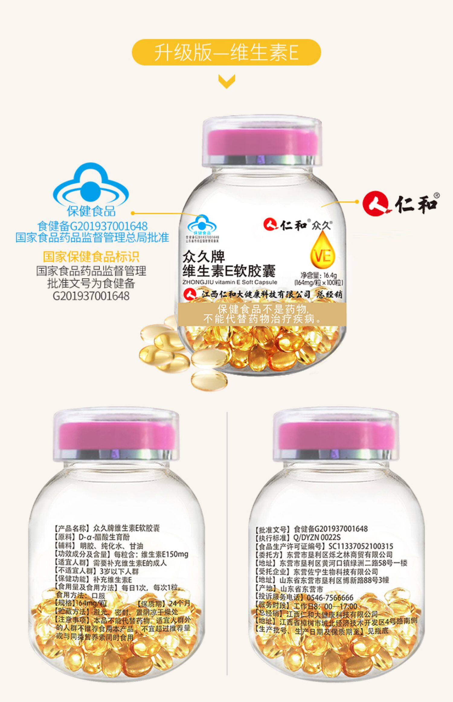 每粒VE含量135mg,1粒顶3粒,远超同行,注入优质橄榄油,双重功效,更易吸收!内服外用,仁和VE帮你嫩白又美丽!