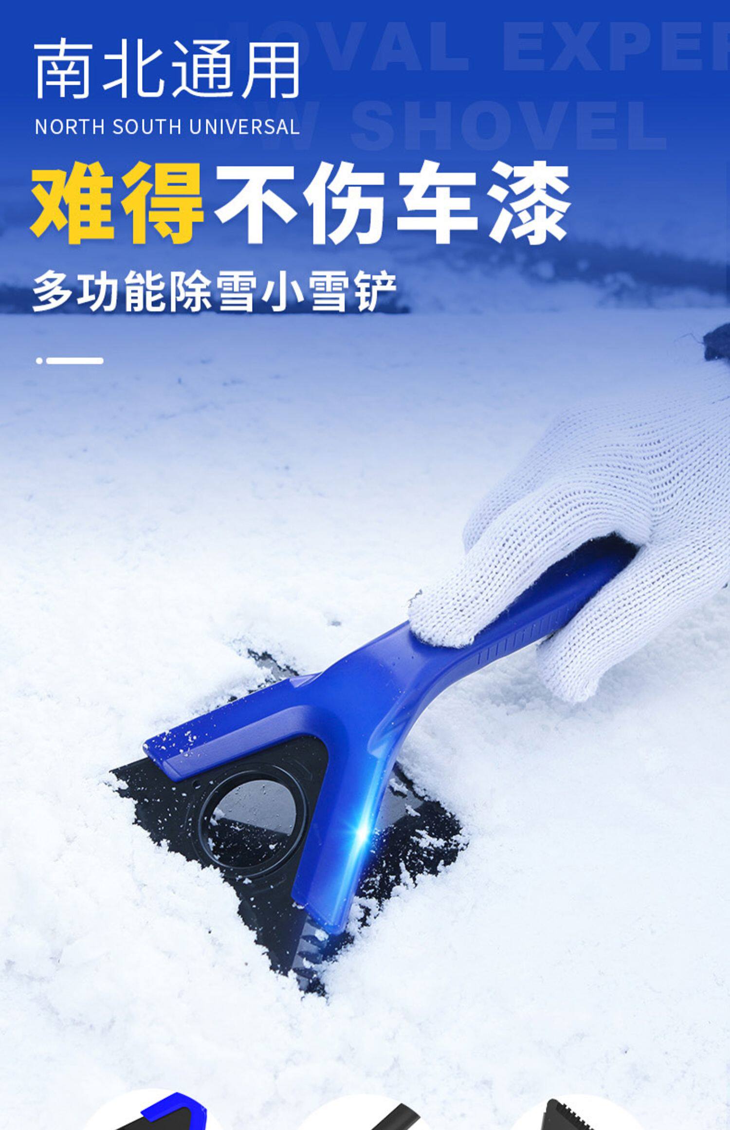多功能三面铲头,铲冰,刮水,除雪,除霜,4大功能应有尽有!轻松除雪除霜除冰刮水,不伤车漆,不伤玻璃,人体工程学手柄,三重防滑设计,使用更省力!