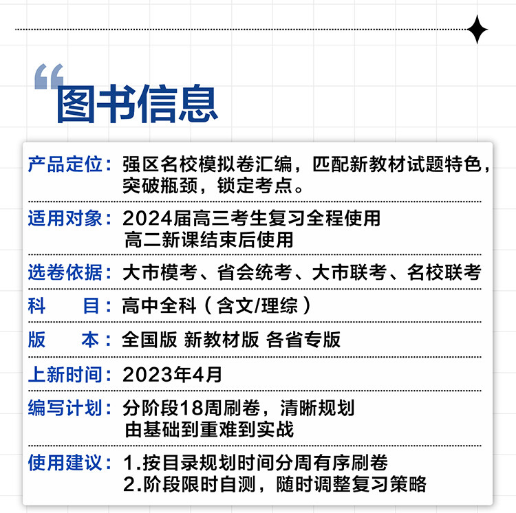 【理想树2024新版】高考必刷卷42套,涵盖文综理综模拟卷试题汇编,精选百强名校卷源,科学筛选,重难题型设置二维码扫码获取知识拓展、方法延伸,一套在手,高考无忧!!