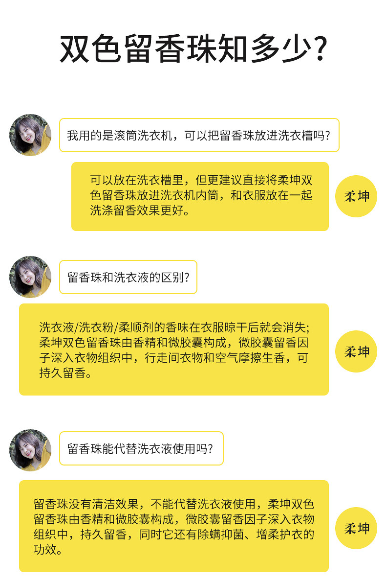 留香,抑菌,除螨,柔顺~四效合一!柔坤洗衣服留香珠!爆香黑科技,洗衣好伴侣~无荧光增白剂,洗1次香7天!有效留香除菌,穿着更舒服健康!
