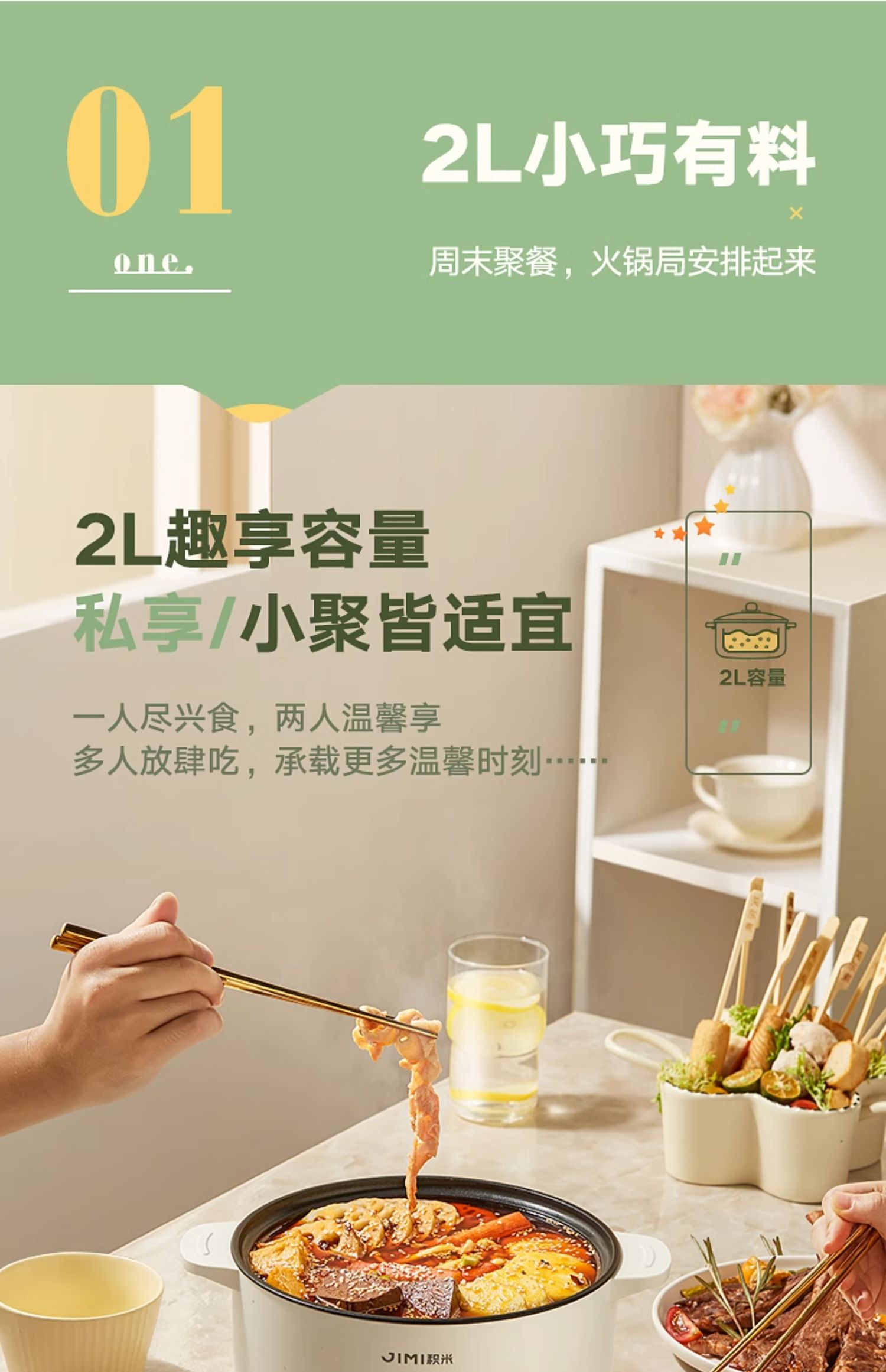【积米2L】多功能家用电火锅,不粘锅内胆涂层,800W大功率环形加热,导热均匀升温快,美味快速热辣上场,瞬时拉满嗨聚氛围。【赠运费险】